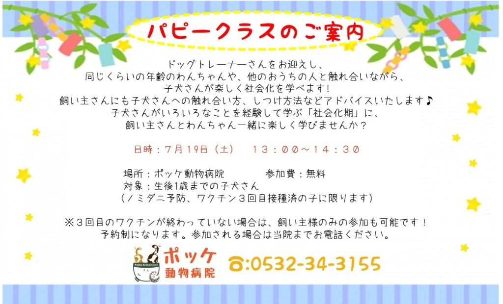 7月 パピークラス開催のお知らせ