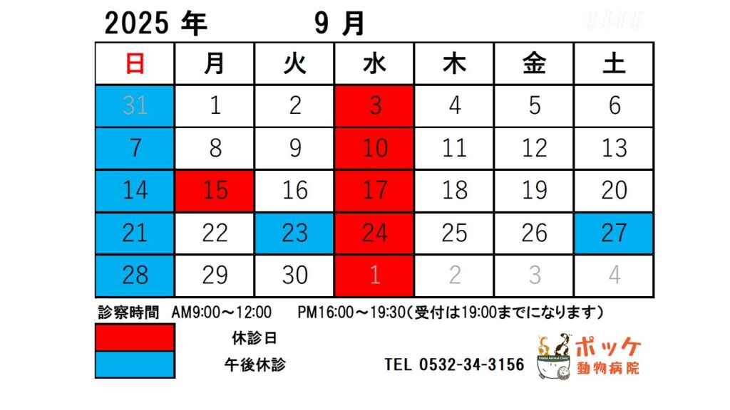 9月の臨時休診日は下記となります。